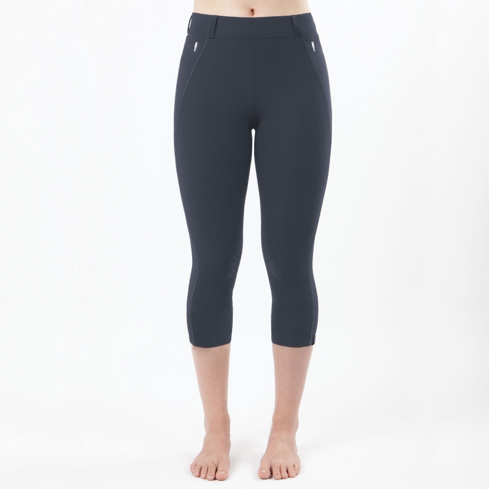 The breezy mid-calf length in our Issential Capriole Capri Tights makes going from saddle to after ride activities easy, comfortable and stylish! These tights are a staple with their comfortable, compressive fit and flattering design lines. With functional and nearly undetectable hand pockets and the newly designed horse head tread knee patches that have just the right grip with a next-to-nothing feel, these tights will become your favorite “go-to” summer essential!