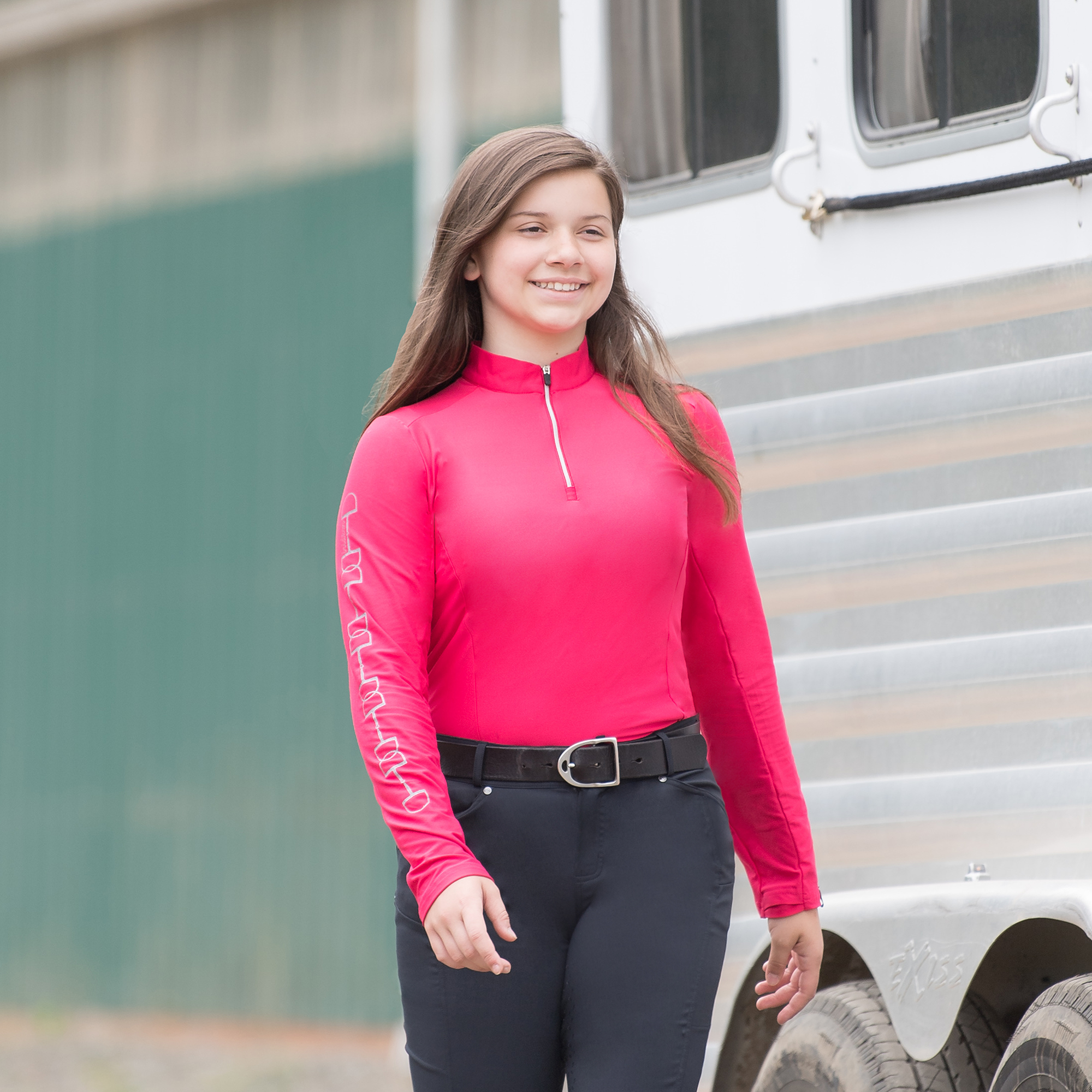Keep your layering comfortable and easy this Fall with our Air Tech Half Zip! It’s moisture wicking technology ensures a dry ride with its ultra-soft and lightweight material. It features convenient thumbholes and an elliptical hem for a flattering fit. The no-chatter zipper adds additional comfort if you need to cool down while riding.