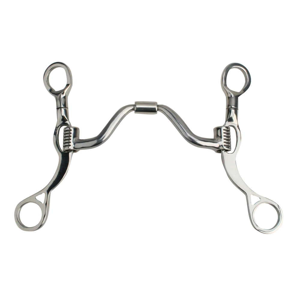 The MB 16PB has a generously wide and moderately high port that allows plenty of room for the horse’s tongue to pass under the bit, more so than the MB 33. Although the port is 1 ⅞", its generous width makes the mouthpiece sit very low in the mouth, minimizing the likelihood of any palate pressure. Sweet iron mouthpiece oxidizes and encourages salivation.