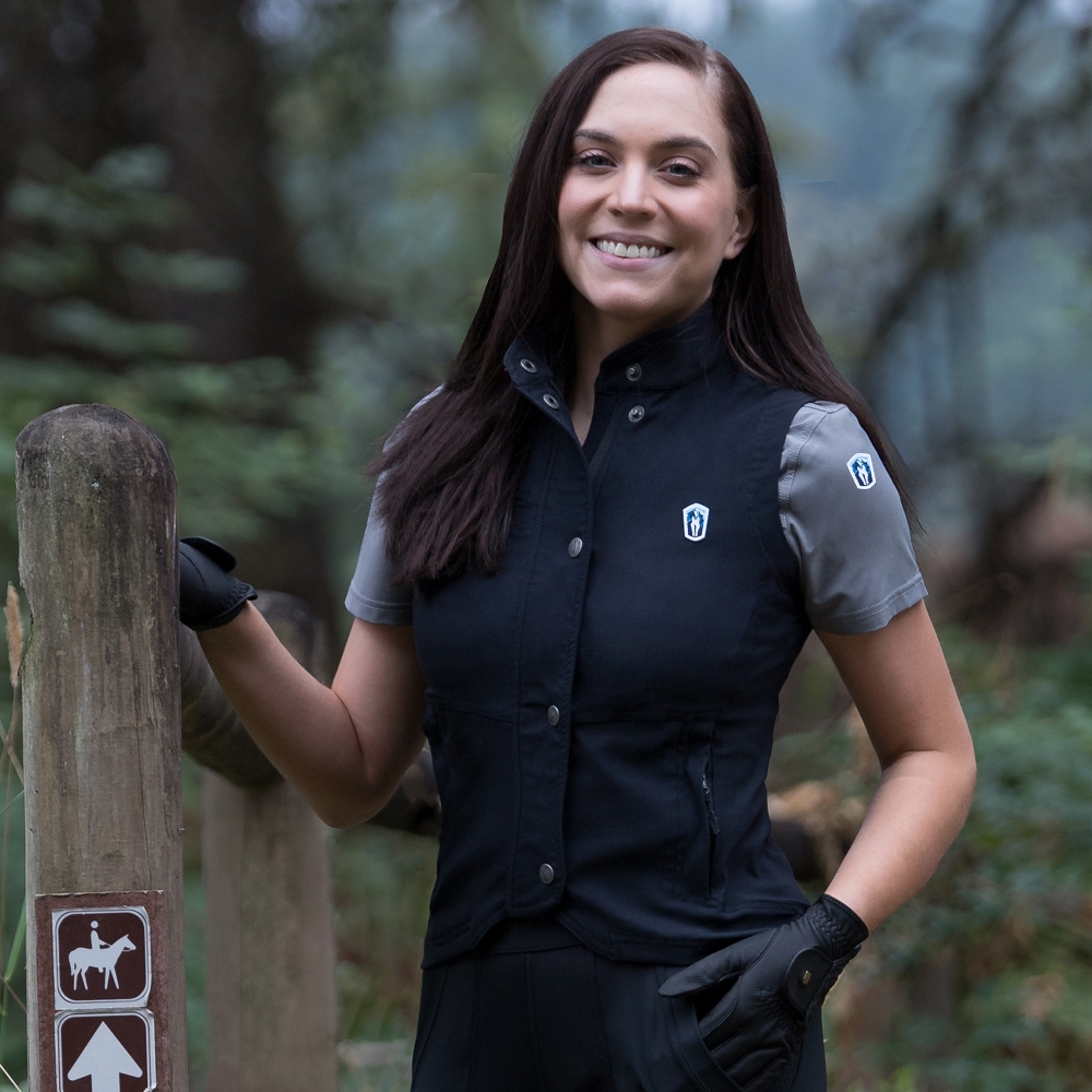 Complete your trail look with our Terra Trail Vest. Like the rest of our Terra Collection, our vest is lightweight, comfortable, moisture-wicking and made with a quick-drying stretch-woven fabric. For extra durability, it features a zip and snap closed front, and for a comfortable fit, this vest has an elliptical hem for coverage in the saddle and a back snap vent that offers optimum freedom of movement. Additional features include chest pocket, hand pockets and a concealed back pocket for packing extra trail necessities.
